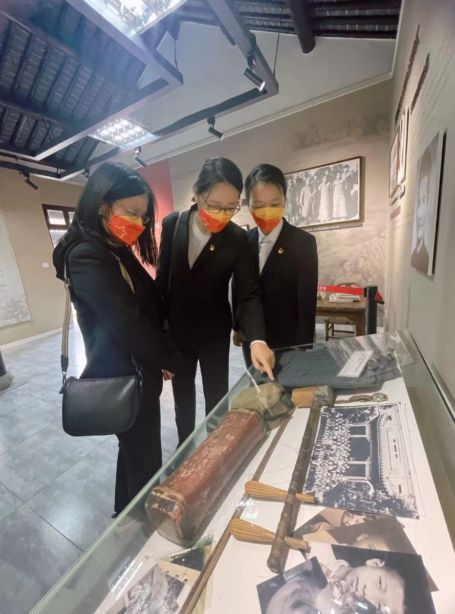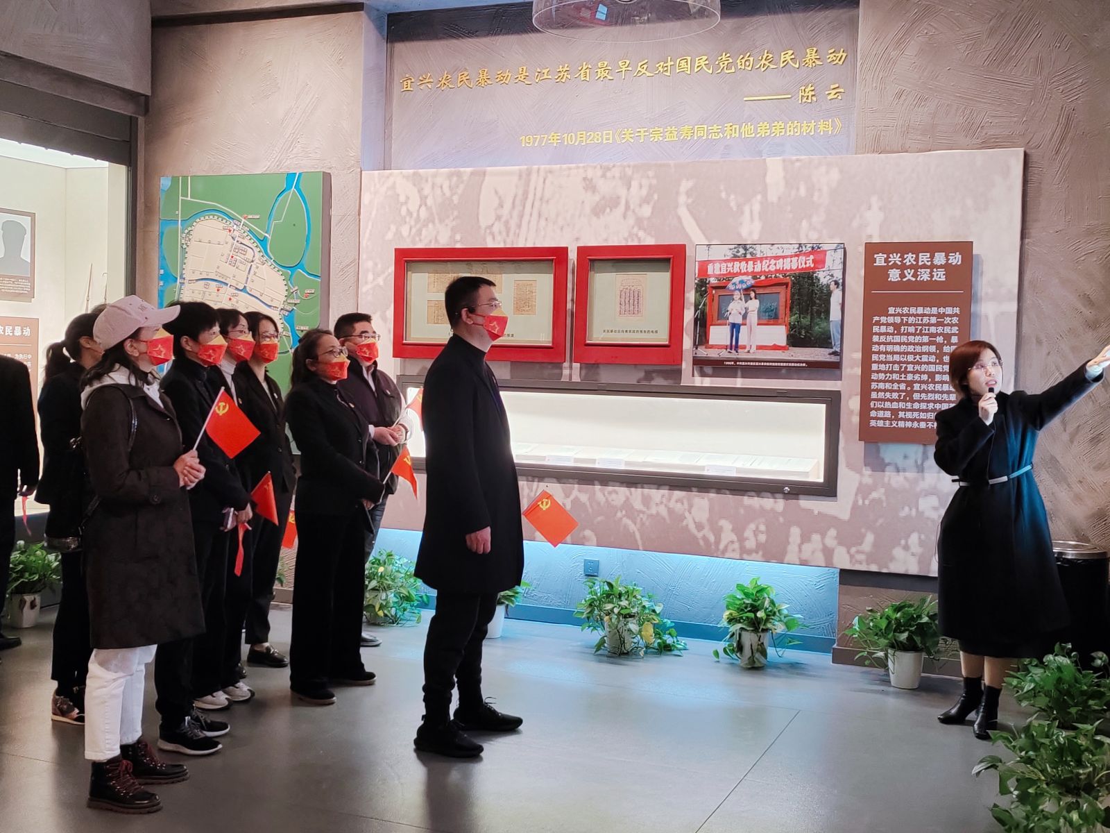 在王书记的带领下,全体党员及入党积极分子一同走进了宜兴党史陈列馆。该馆是宜兴唯一集党史宣传、市情教育、革命文物收藏于一体的专门机构。在讲解员的引导下,沿着场馆展现的历史脉络和时间顺序,大家通过一幅幅图片、一段段文字、一件件文物,去感受革命先烈们英勇奋战、无私奉献的革命精神。了解到了中国共产党在宜兴不懈奋斗、开拓创新、自身建设的成功实践。令全体党员同志们感慨道:“作为一名中国共产党人,要常思过往,展望未来,牢记一名共产党员的义务和责任担当,珍惜这来之不易的幸福生活!”