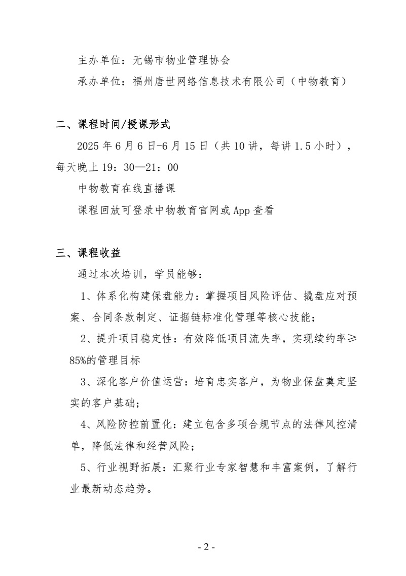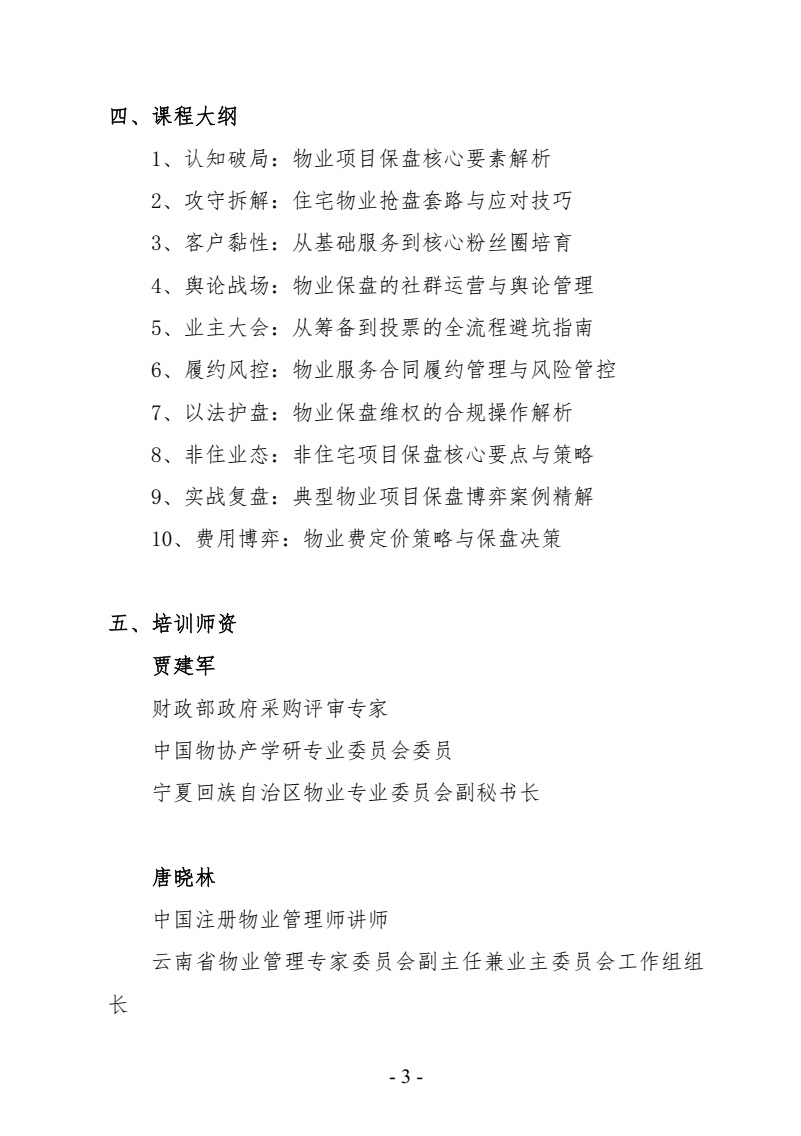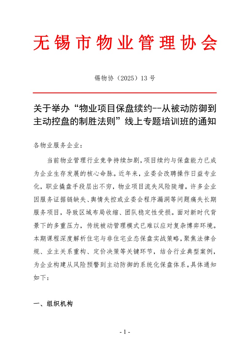 关于举办“物业项目保盘续约--从被动防御到主动控盘的制胜法则”线上专题培训班的通知